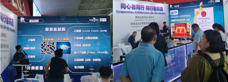本次联袂参展,不仅体现了集团在高端医疗器械领域的综合实力,更通过资源整合,为临床专家和合作伙伴提供了从骨科到外科的一体化创伤修复新思路。骨科方面重点展示了几款核心产品:如目前国内唯一一款在天然小牛骨的支架结构基础上结合天然高活性的骨诱导蛋白——BMP®;传导性仅次于自体骨这一“金标准”的植骨材料——同种异体骨;创面修复领域的革新性产品——基因转染猪皮,通过先进的基因工程技术,降低了免疫排斥反应。几种产品均在临床应用中减轻患者痛苦,为后续治疗创造宝贵条件的功能。